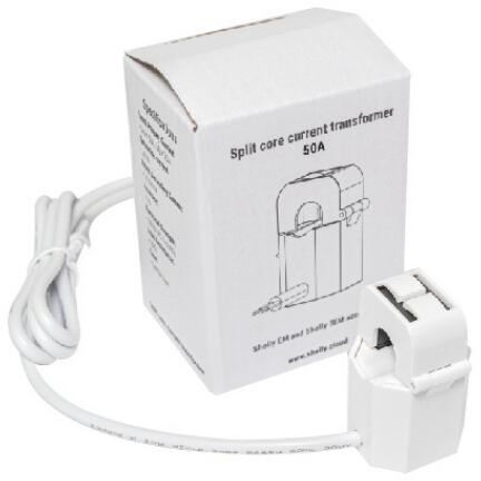 A Shelly 50A-es, vezetékre húzható áramváltója a Shelly EM egyfázisú fogyasztásmérő külön rendelhető kiegészítője.