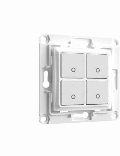 A Shelly WiFi-s okosrelékhez való kapcsolószerelvény és sorolókeret segítségével helytakarékosan és egyszerűen alakítható ki okos fali villanykapcsoló, mely még a legkisebb mélységű fali aljzatba is belefér. Ez a Shelly villanykapcsoló rendszer fehér színű, 4 gombos kapcsolómodulja + Plus i4 relétartó adaptere.