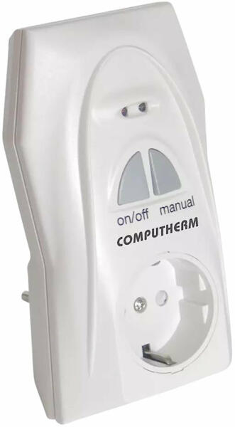 Computherm Q1RX rádiófrekvenciás termosztáttal vezérelhető dugaljA Computherm Q1RX rádiófrekvenciás termosztáttal vezérelhető dugalj alkalmas kazán vagy egyéb elektromos készülék vezérlésére, ami 230 V-tal működik. A Q1RX egy olyan dugalj, amit a Computherm Q3RF, Q5RF, Q7RF, Q8RF és a Q20RF termosztátokhoz fejlesztettek. Ez a dugalj a termosztátok vevőegysége helyett vag