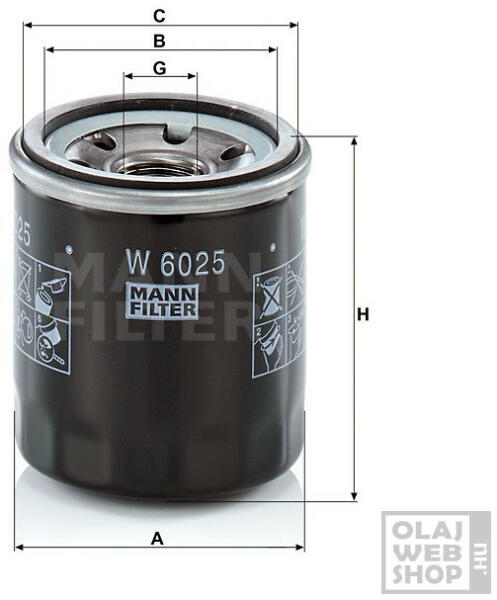 MANN FILTER Olajszűrő H 614 n Termékinformáció Szűrő típusOlajszűrő GTIN kód4011558251307 Méretek (mm) A59 B9 C19 H106 MANN FILTER termékkódok Magyarázatok a rendelési számokhoz BF Dízel üzemanyag-szűrőbetét BFU Fémmentes dízel üzemanyag-szűrőbetét C Légszűrőbetét (utastér-szűrőbetét) CF Másodlagos szűrő CP CompacPlus® légszűrő betét CS Légszűrőbetét