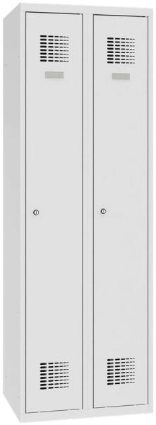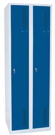 A bővített tartozék lehetőségekkel rendelkező legelérhetőbb hegesztett öltözőszekrények két önállóan zárható részből állnak. A biztonságot a teljes ajtóhossz mentén található merevítés növeli, beleértve a keretet, az ajtó perforálást, melyen keresztül nem lehet betekinteni. Öltözőszekrény 0,6 mm vastagságú acéllemezből. Hatékony nedvesség-elvezetés a ru