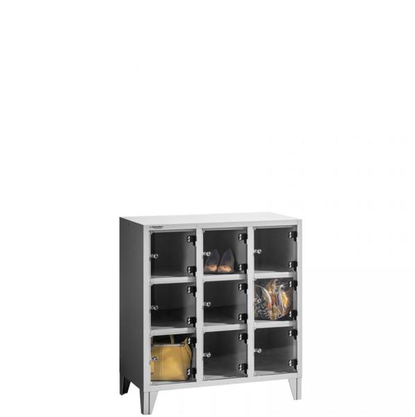 "Magasság1000 mmSzélesség900 mmMélység500 mmLábmagasság120 mmSúly56,4 kgRekeszek száma9 dbRekeszek mérete (magxszélxmély)240x300x500 mmAlapanyagI. osztályú acéllemezAlapszínRAL 7035 / világosszürkeFestéselektrosztatikus szinterezés / porszórásTermékkódBOX PARAP 9 PLEXIPlexiajtós szekrényünk az üzemeltetés legjobb barátja. Segítségével a nap végén könnyedén elle