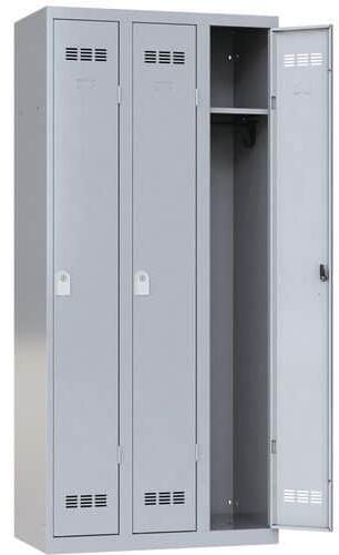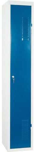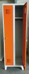 Szerelt öltözőszekrény válaszfallal tartós, 0,6 mm vastagságú (a szabvány 0,8 mm-esnek megfelelő) profilozott acéllemezből. 180°-ban nyíló masszív ajtó. Az öltözőszekrényt válaszfal osztja ketté függőlegesen, amely lehetővé teszi a tiszta és koszos ruhák tárolását. Névcímke elhelyezhető. Zárás lakattal (nem tartozék, ajánlott kengyelátmérő 6-7 mm).