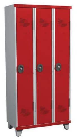 Hegesztett szekrény tartós, 0,6 mm vastagságú (a szabvány 0,8 mm-esnek megfelelő) profilozott acéllemezből. Minden rekeszt válaszfal oszt ketté függőlegesen, amely lehetővé teszi a tiszta és koszos ruhák tárolását. Lekerekített sarkok a nagyobb felhasználói biztonság érdekében. 180°-ban nyíló masszív ajtó. Perforált ajtó és szekrény a jobb nedvességelvezetés ér