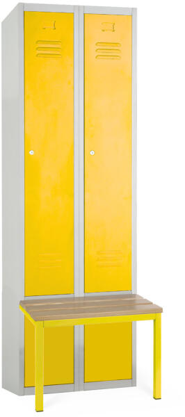 Fém szekrény paddal, hengerzárralSemmilyen iskola, fitneszterem vagy munkahely, pl. az iparban, nem nélkülözheti a szekrényeket. Átöltözéskor biztosan értékelni fogja azt a padot, amelyen cipőcsere közben leülhet, vagy leteheti a csomagjait. Ezzel a szekrénnyel egy vásárlással mindent megoldhat!A szekrény fémlemezből készült, melynek köszönhetően még kevésbé kíméle