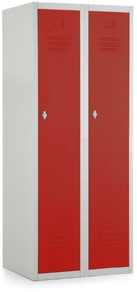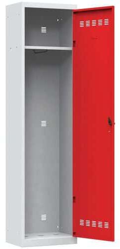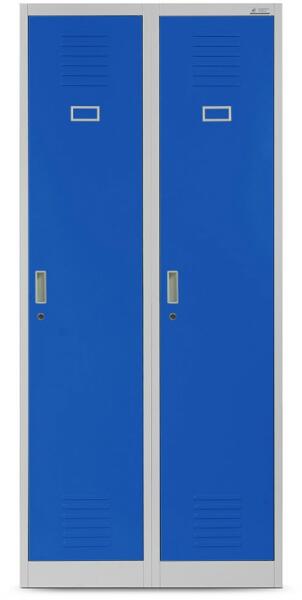 Hegesztett szekrény tartós, 0,6 mm vastagságú (a szabvány 0,8 mm-esnek megfelelő) profilozott acéllemezből. Minden rekeszt válaszfal oszt ketté függőlegesen, amely lehetővé teszi a tiszta és koszos ruhák tárolását. Lekerekített sarkok a nagyobb felhasználói biztonság érdekében. 180°-ban nyíló masszív ajtó. Perforált ajtó és szekrény a jobb nedvességelvezetés ér