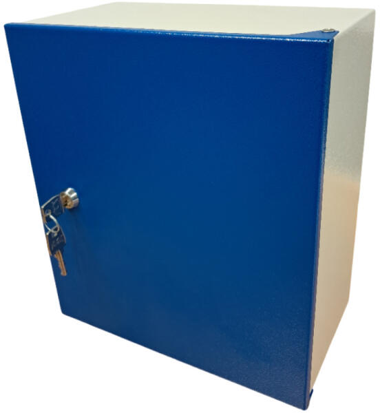 I. o. hidegen hengerelt acéllemezből Erős hegesztett szekrénytest Falra szerelhető kivitel 35 d... I. o. hidegen hengerelt acéllemezből Erős hegesztett szekrénytest Falra szerelhető kivitel 35 darab telefon tárolására Biztonsági hengerzárral, 2 db kulccsal Hátfal nélkül Elektrosztatikus porszórt felület kék színben mérete: 200 × 300 × 370 mm
