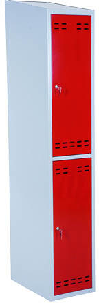 A bővített tartozék lehetőségekkel rendelkező legelérhetőbb hegesztett öltözőszekrények két önállóan zárható részből állnak. A biztonságot a teljes ajtóhossz mentén található merevítés növeli, beleértve a keretet, az ajtó perforálást, melyen keresztül nem lehet betekinteni. Öltözőszekrény 0,6 mm vastagságú acéllemezből. Hatékony nedvesség-elvezetés a ru