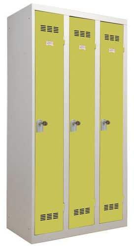 Nyújtsa meg ügyfeleit, diákjait vagy céges kollégáit minőségi háttérrel. Hozz létre számukra szép és egyben praktikus öltözőket, amelyek nem csak átöltözéskor szolgálják majd jól őket. A háromrészes fém gardrób ideális megoldás tömeges öltözőkhöz. Könnyen csatlakoztatható a térben lévő többi gardróbszekrényhez, és emellettelegendő helyet biztosít a sz