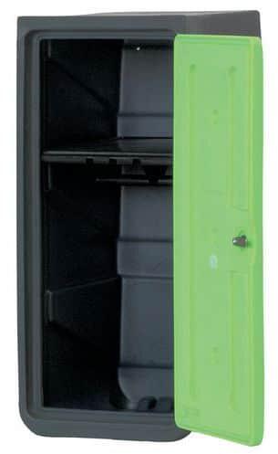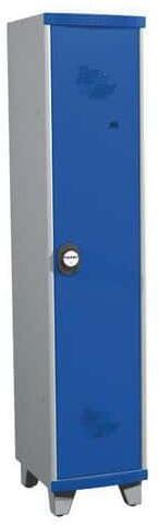 Műanyag öltözőszekrény élelmiszeripari 938-as sűrűségű polietilénből. Erős szerkezet az egy részből álló műanyag háznak köszönhetően. Ellenálló a detergensekkel, savakkal és zsírokkal szemben. Teljesen lemosható a tökéletes higiénia érdekében. Polccal és akasztórúddal osztható. Zárható forgózárral és lakattal (a lakat nem része a szállításnak).