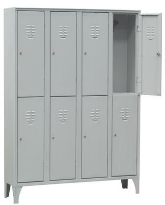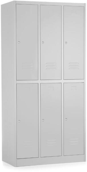 - sportlétesítmények, öltözők számára - szürke színű acéllemez szekrény - biztonsági zár 2 db kulccsal - ruhaakasztórúddal - szellőzőrésekkel - névtáblatartóval - rekeszek szélessége: 30 cm - méret: 180 x 120 x 50 cm (ma x szé x mé)