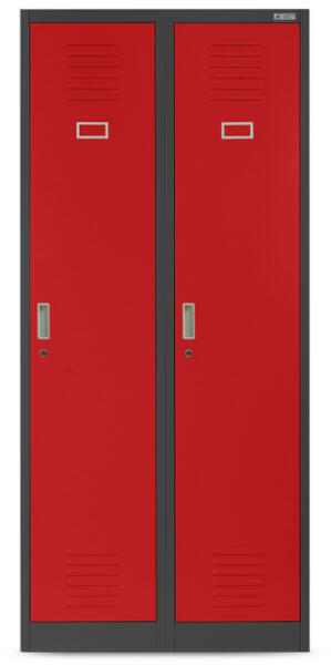 Két modulos, polccal és köztes fallal rendelkező öltözöszekrény A 2 modul 4 tároló helyet biztosít mely minőségi zárral van ellátva (2 kulcs/ajtó a készletben) Szellőzőnyílások találhatók az ajtókon a légáramlás érdekében Strapabíró minőségi acélpléh szerkezet, melynek 0,6 mm a vastagsága Porszórt felület Választható több színben és méretben Ez a termék