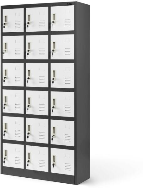 Első sorban sportegyesületek, iskolák, munkahelyek, gyárak, korházak számára ajánljuk. Értékmegőrzőnk 18 rekeszes szelekciója, lehetővé teszi a kényelmes tárolást, összehajtott ruhaneműk, táskák, cipők részére. Az értékmegörző. A design szellőzőnyílások segítségével a benne tárolt tárgyak szellőzése kiválóan biztosított. A porszórással kezelt felület l