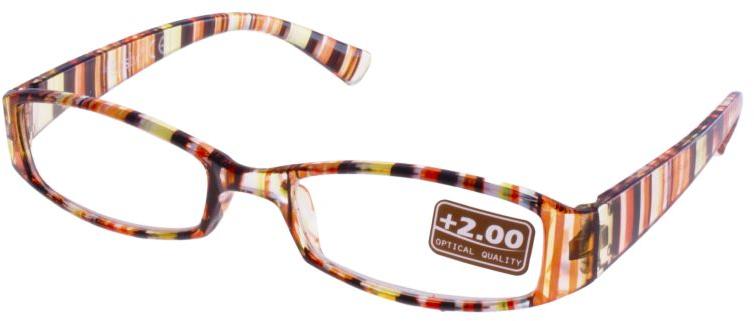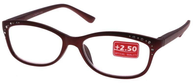 Teljes műanyag női szemüvegkeret, barna áttetsző színben. Műanyag szárain márkajelzéssel ellátottak.