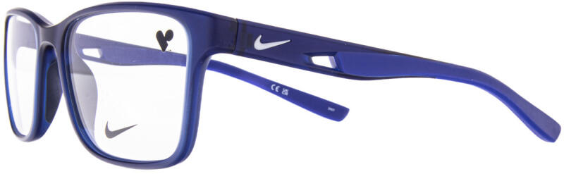 A Nike matt sötétkék műanyag szemüvegkeret modern és sportos megjelenést kínál. A szárán végigfutó királykék átmenet egyedi stílust kölcsönöz a keretnek, miközben a klasszikus Nike pipa a márka ikonikus jegyét képviseli. Tartós és kényelmes viseletet biztosít, ideális választás mindennapi használatra, aktív életmódot folytatók számára.