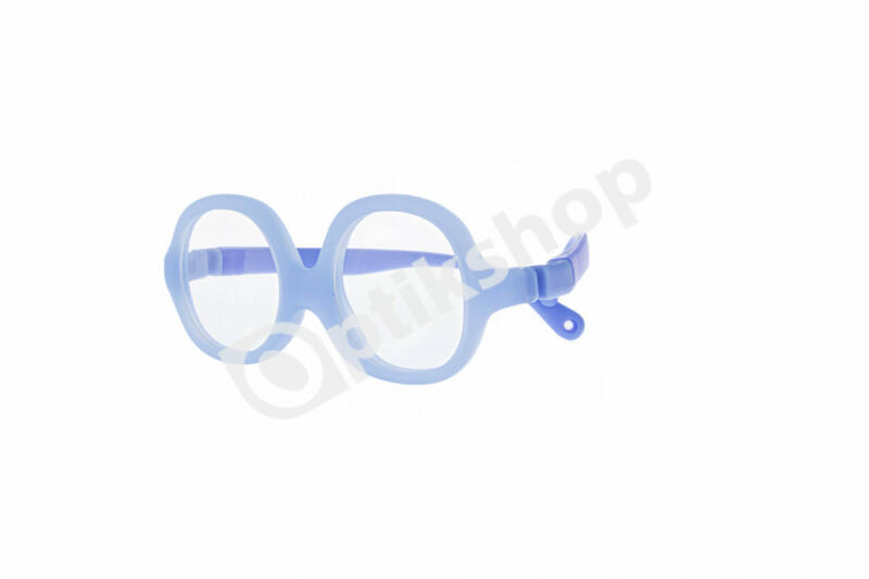 Hajlékony műanyag és szilikon alapanyagból készült gyerek szemüvegkeret áttetsző, kék színben. Szárcsuklói rugalmasak, kiegészítő pántja játék során stabilan tartja gyermeke szemüvegét.