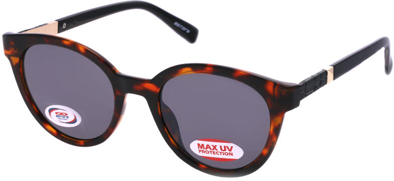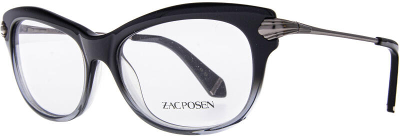 Teljes műanyag női szemüvegkeret, fekete-szürke átmenetes és áttetsző színben. Fém szárain különleges díszítéssel és márkajelzéssel ellátottak.