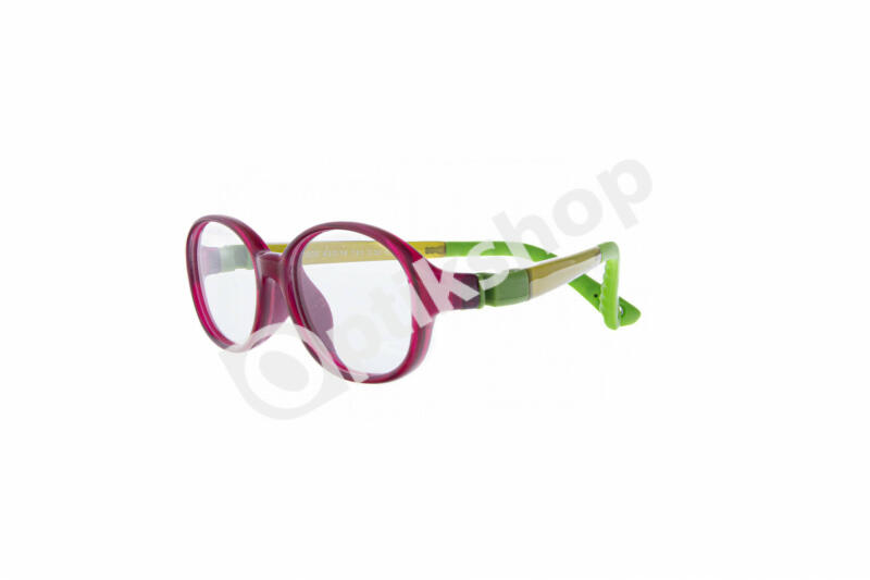 Hajlékony műanyag és szilikon alapanyagból készült gyerek szemüvegkeret meggypiros-zöld színben. Szárcsuklói rugalmasak, kiegészítő pántjai sportolás során stabilan tartják gyermeke szemüvegét.