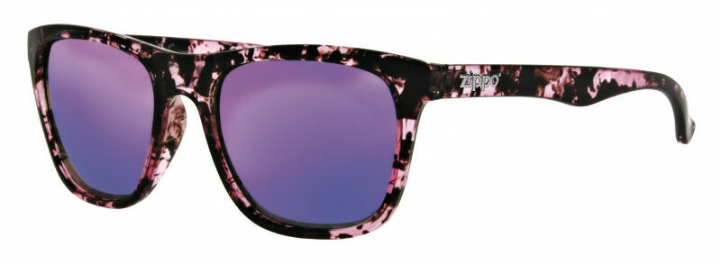 Zippo OB35-09 női napszemüveg. Tökéletes fényvédelem retro stílusban. Lila tükrös lencsék, vastag kényelmes keret rózsaszín márvány mintával. rugalmas és egyben ellenálló polikarbonát keret UV 400