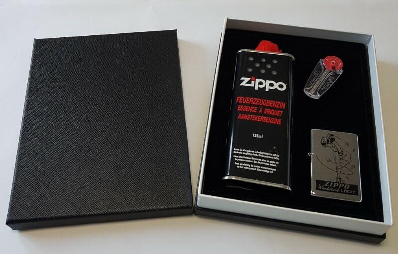 Benzines Zippo vihargyújtó szett, ami tartalmaz egy Zippo vihargyújtót, egy flakon Zippo benzint (125ml) és egy csomag tűzkövet, ami 6 db tartalék ...
