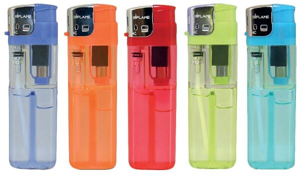 Minőségi és márkás fogyasztói öngyújtó, újratölthető változatban, különböző színekben. Színek: áttetsző, zöld, kék, sárga, piros, narancssárga, lila.