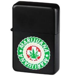 Angel Benzines vihargyújtó az elején egy zöld, fehér és piros kör alakú emblémában zöld marihuána levél. A fekete színű öngyújtó nemesacél házzal ...