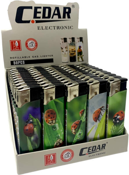 Katicabogár mintás puha lángú CEDAR öngyújtó 5 féle változatban. Ezek a cedar gyújtók a Katicabogarak mindennapjait örökítik meg, akár csak a National geographic csatorna... ha még létezik.