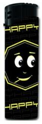 Fogyasztói újratölthető öngyújtó, különböző motívumokkal, amelyek Szmájlikra és a jókedvre emlékeztetnek. Az öngyújtó rendszere un. piezoelektromos rendszer.