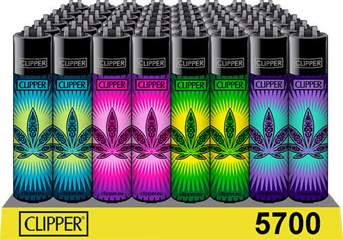 Clipper öngyújtók Classic méretben a Flash Leafs elnevezésű kollekcióból, amelyekre kenderlevelek képei vannak nyomtatva különböző színkombinációkban, érdekes díszítésekkel. Minden Clipper öngyújtó kiváló minőségű és erős nejlonból készül, így ellenáll a durva bánásmódnak is. Az öngyújtók előre beállított lángmagassággal rendelkeznek, és a gyártó sz