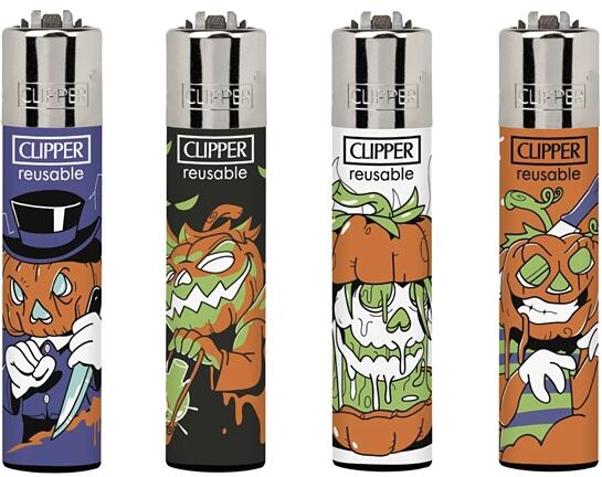 Clipper öngyújtók a Terror Pumpkins nevű gyűjtői kiadásból. Az öngyújtókra kísérteties tökmintákat képeit nyomtatták, amelyeket Halloween alkalmából szoktak díszítésre használni. Minden egyes gyűjtői Clipper öngyújtó, a minőségi nyomtatás mellett, kiváló minőségű és erős nejlonból készül, így ellenáll a durva kezelésnek vagy akár egy kisebb esésnek is.