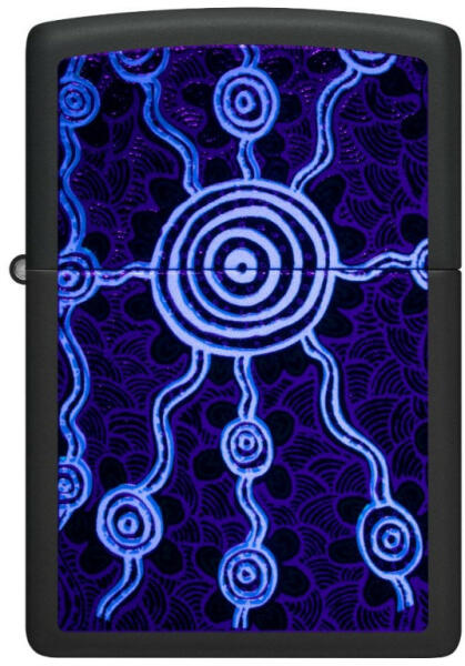 Zippo John Smith Gumbula Black Light UV 48625 öngyújtó. Ultraibolya fényben világít. Kultúrája és országa gazdag földtónusait és élénk színeit felhasználva John Smith Gumbula ausztrál művész és aktivista a történelmi őslakos művészeti technikákat és a modern művészetet egyesíti, hogy lenyűgöző műalkotásokat hozzon létre erőteljes üzenettel. Ez az új, lézerr