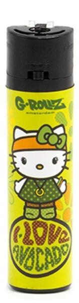Rózsaszín kivitelű G-Rollz márkájú öngyújtók a népszerű rajzfilmfigurával. Az öngyújtókra Hello Kitty van nyomtatva, méghozzá három különböző variációban. Hello Kitty egy japán tervező rajzfilmmacskája, amelynek motívuma először 1974-ben jelent meg pénztárcákon. A Hello Kitty termékek világszerte népszerűek, és az öngyújtókon kívül leggyakrabban iskolai f