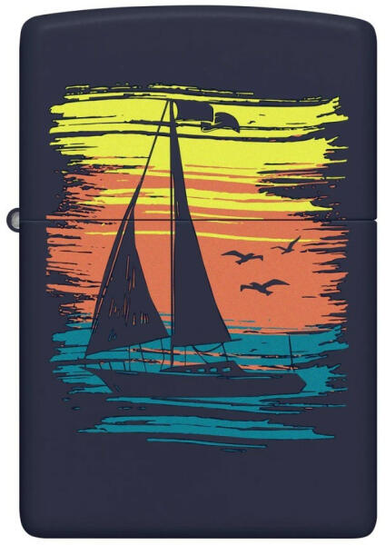Zippo Sailboat Design 239-107266 öngyújtó. Vitorlás naplementében. Eredeti Zippo, USA-ban készült öngyújtó Minden Zippo öngyújtó szélálló kivitel gyakorlatilag bárhol működik Díszdobozba csomagolva Az öngyújtók töltetlen állapotban kerülnek forgalmazásra!