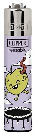 Clipper öngyújtó trambulinon lévő ételek képeinek nyomtatásával. A kiadásban egy banánt, egy fagylaltot, egy almát és egy sütit talál, amelyek trambulinon ugrálnak. Vidám hangvételű öngyújtók a Clipper márkától, még vidámabb ételek képeinek eredeti nyomtatásával.