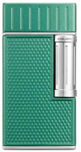 Colibri Julius szivaros öngyújtó zöld és króm színű, tűzköves öngyújtó dupla oldalsó lánggal. Az öngyújtó gyémánt mintás és az alján újra ...