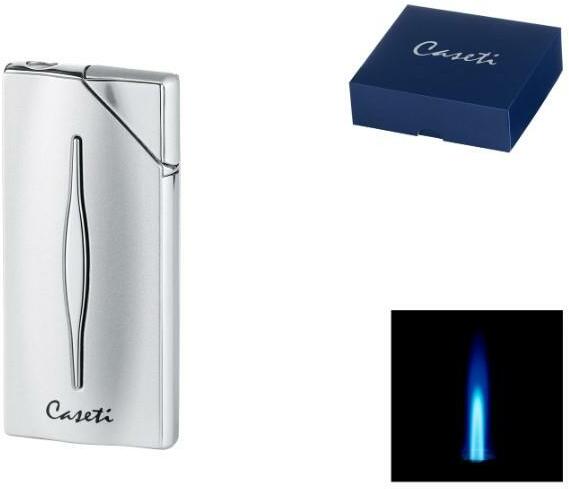 Szúró lánggal égő dekoratív Caseti szivargyújtó ezüst és króm színben. Az öngyújtó alján tudjuk állítani a láng méretet, az öngyújtó bármilyen hagyományos utántöltő gázzal tölthető...