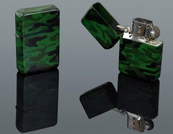 Benzines öngyújtó Gentelo 0015 Camo, lézergravírozás lehetőségével. Az öngyújtót elegáns dobozban szállítjuk. Az öngyújtó kanócot, követ és vattát tartalmaz. Anyaga: fém.