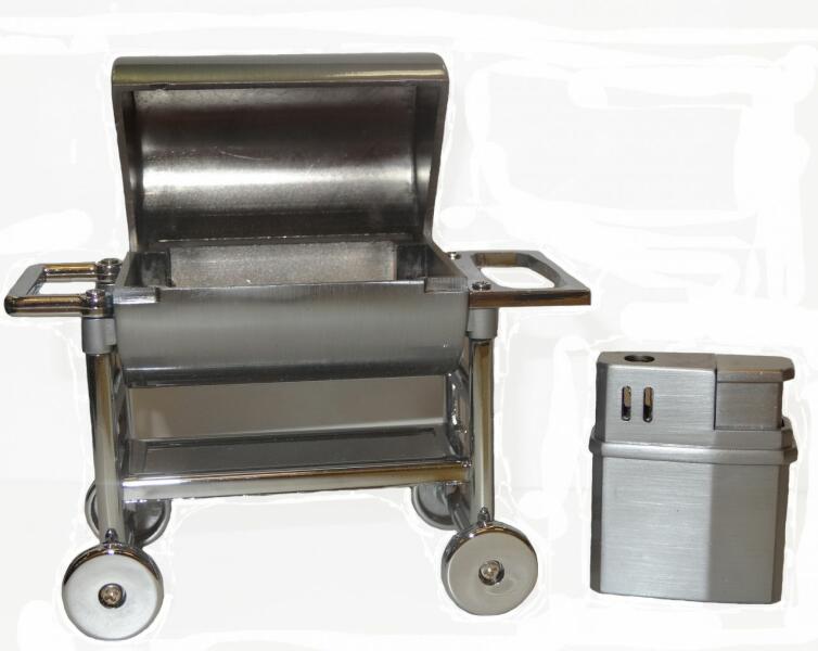Grill kocsi Dobozos asztali szett Vihargyújtó öngyújtó - Anyaga Fém- Extra Grill kocsi design- Asztali öngyújtó- Hagyományos lánggal ég- Tölthető(gázzal)- Állítható a láng mérete- Mérete 4 x 3 cm- Grill kocsi 9 x 8 cm