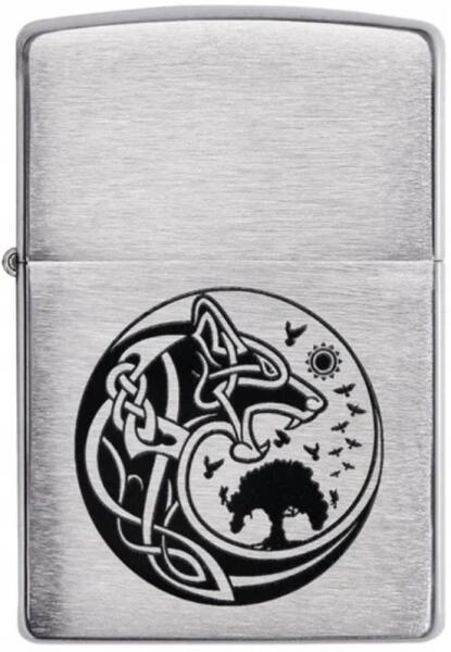 Zippo benzines csiszolt, króm színű vihargyújtó. Az öngyújtót a viking időkre utaló fekete grafikával díszítették. A grafikus kör hátterén egy üvöltő ...