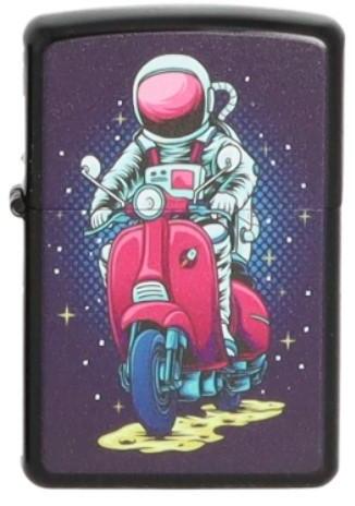 Angel Benzines vihargyújtó az elején piros robogón ülő asztronautát ábrázoló mintával. A fekete színű öngyújtó nemesacél házzal készült. A benzinnel tölthető öngyújtóval semmi ...