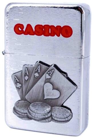 Króm színű, benzines öngyújtó 4 ász kártyalap mintával. Klasszikus tűzköves vihargyújtó, mely benzinnel tölthető. Az öngyújtó üres állapotban kerül kiszállításra. Amíg nincsen ...
