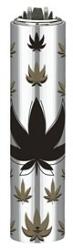 Fém Clipper öngyújtók gyűjteménye Classic méretben, kenderlevelek motívumával és levehető borítással. A teljes fémborításra különböző formájú kenderlevelek vannak nyomtatva, amelyek nemcsak alakjukban, hanem színükben is különböznek. Egyes levelek inkább az indica-félékre, mások a sativa fajtákra hasonlítanak, stb. Ezüst, arany vagy fekete színű levélmotívumok