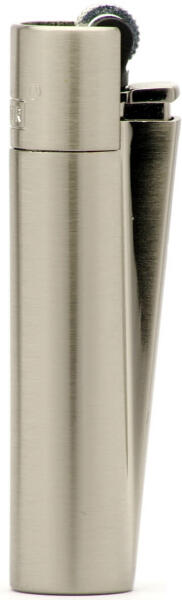 Felsőkategóriás Clipper butángázos, tűzköves öngyújtó fém tokozással, fémdobozos kiszerelésben, cserélhető gyújtószerkezettel és tűzkővel.