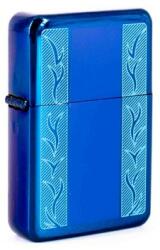 Termék jellemzői: Rézből készült öngyújtó, kék bevonattal, első oldala mintás. Hátsó oldalát gravírozzuk - szöveg/logo/grafika. Sajátmárkás Zippo dobozába csomagolva szállítjuk. Gravírozási technika : Kitöltött (lézeres) Teljes méret:38x57mm Felsőrész (kupak) mérete: 38x22mm Alsórész mérete: 38x35mm