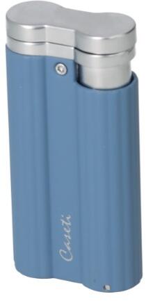 Caseti szúró lánggal égő dekoratív szivargyújtó matt világoskék és króm színű, elején a Caseti logoval ellátva. Az öngyújtó alján tudjuk állítani a láng méretet, bármilyen hagyományos utántöltő ...