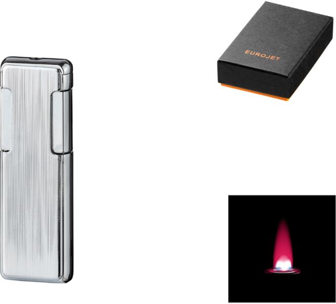 Eurojet márkájú, erős Jet lángos szivaröngyújtó ezüst színű szálcsiszolt mintával. Az erős szúró láng segítségével az öngyújtó, még a nagy méretű szivarokat ...