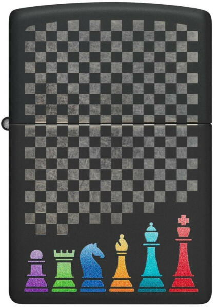 Zippo Chess Pieces Design 48662-000003 öngyújtó. Akár bajnok sakkmester, vagy csak most kezd beletanulni a játék fortélyaiba, mutassa meg stratégiai képességeit ezzel a matt fekete öngyújtóval. A lenyűgöző sakktáblát és a többszínű bábukat a lézergravírozási és a színes képalkotási eljárási technikák nyerő kombinációja teszi különlegessé. Eredeti Zippo, USA-b