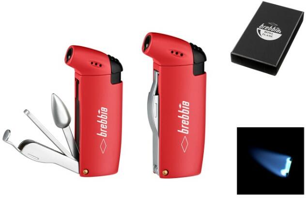 Piros színű Brebbia pipa öngyújtó oldalsó, gömb alakú lánggal. Az oldalából kihajtható pipa kellékekkel, pipatömködővel, pipaszurkálóval és pipakéssel. A pipás öngyújtó ...