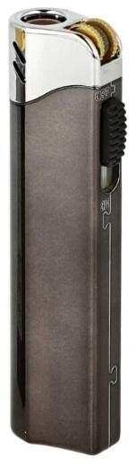 Angel márkájú, antracit színű, fémházas szúrólángos öngyújtó, ezüst színű felső résszel. Az öngyújtó oldalán lévő csúszkával lehet nyitni, illetve zárni a gázt...