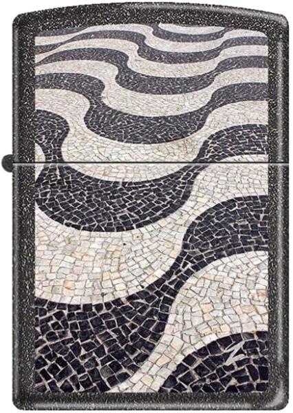 Zippo benzines vihargyújtó az elején Copacabana Beach mozaik mintával. Az öngyújtó oldalsó és hátsó része kőhatású és nemesacél házzal készült. A benzinnel tölthető ...